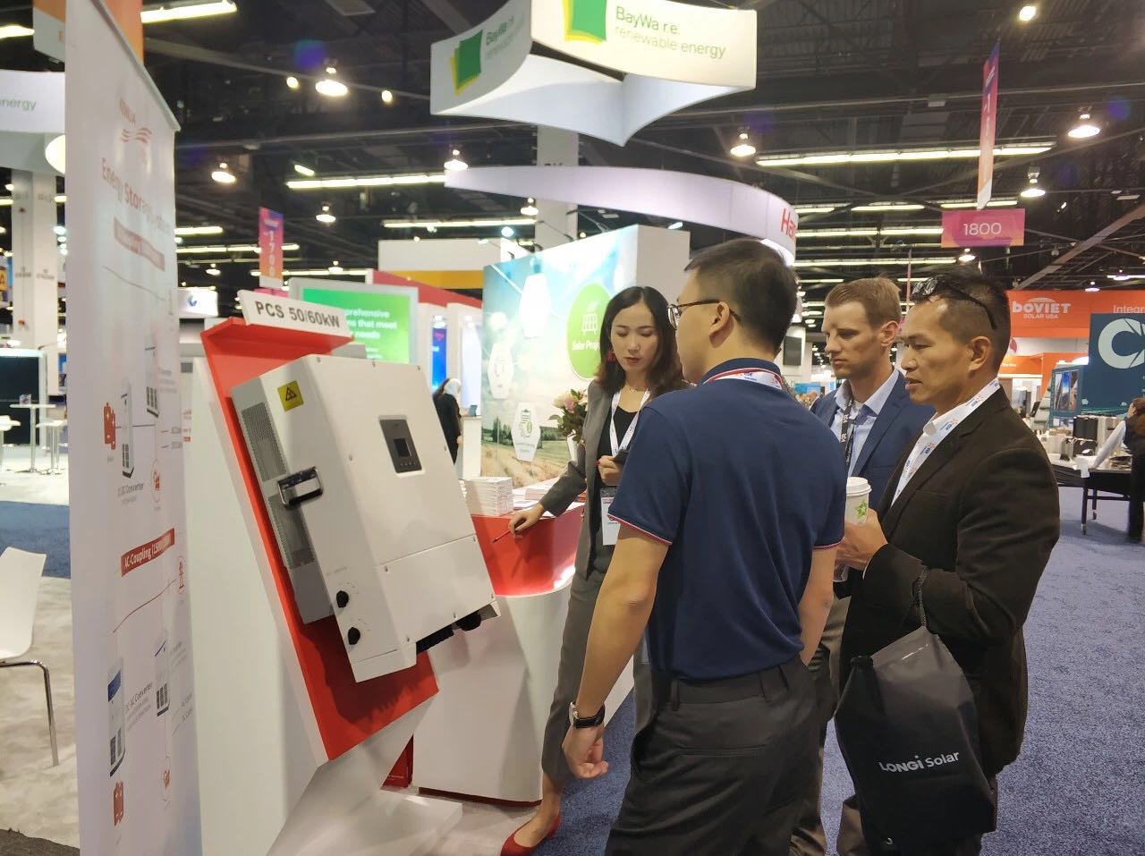 SPI现场,科华恒盛展位上咨询不断,专业技术人员与客户交流热烈。针对户用储能市场,科华恒盛推出户用储能逆变器SPH5kW,帮助北美客户实现能源独立。