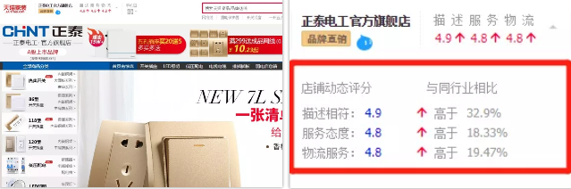 在天猫上,正泰电工旗舰店可是常年独占电工品类第一名,店铺评分也是远远高于同行。