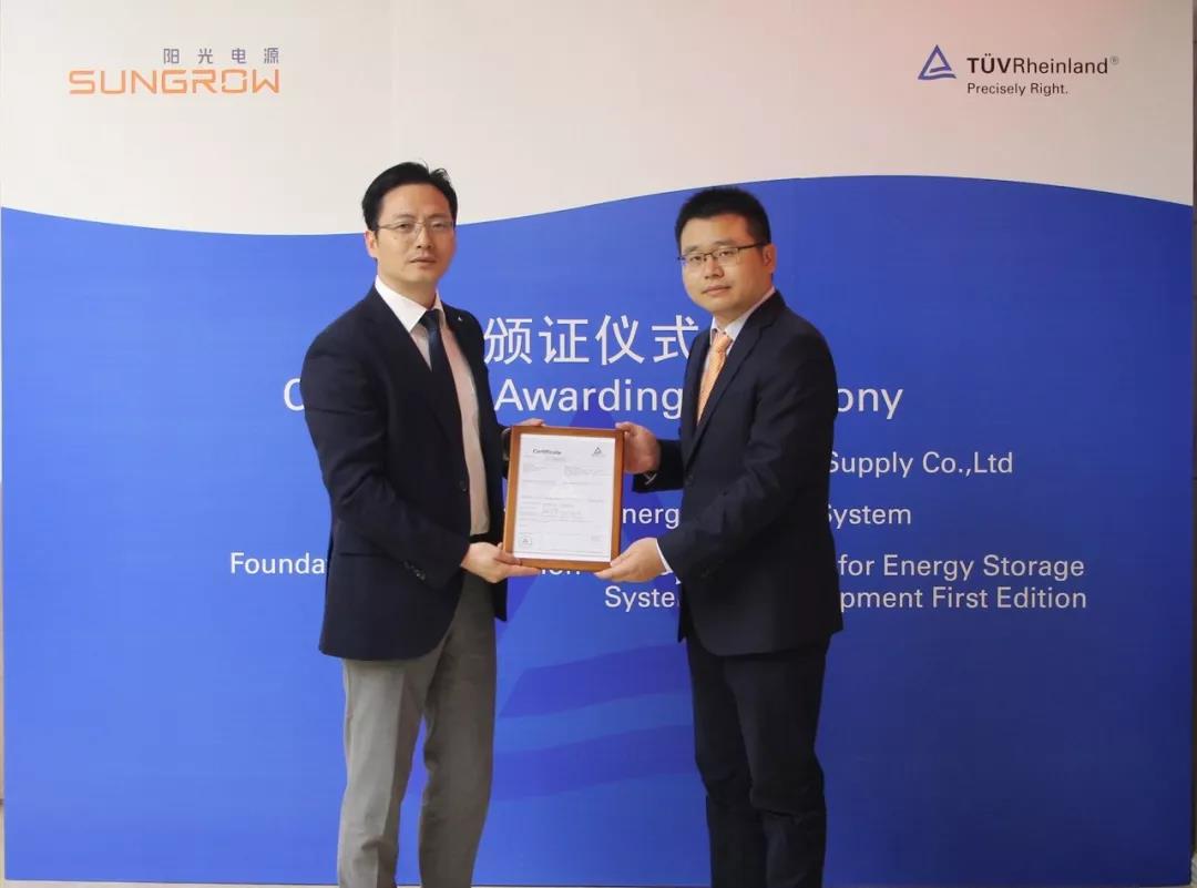 中国第一张!TÜV莱茵向阳光电源颁发储能系统北美认证证书