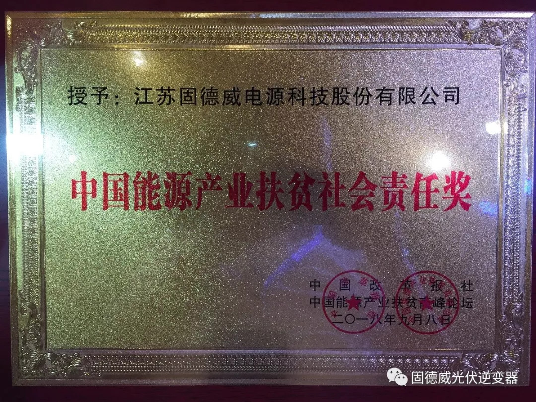 固德威荣获“中国能源产业扶贫社会责任”奖