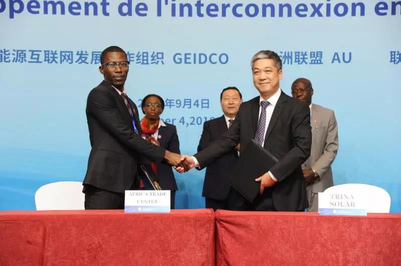 肩负着“用太阳能造福全人类”的企业使命,天合光能股份有限公司多位高管出席了9月3日至4日在北京举行的“2018中非合作论坛北京峰会”和“非洲能源互联网发展论坛”,分享了公司在非洲市场发展、能源互联网解决方案等方面的经验,并与非洲贸易中心签署战略联盟合作协议,期待为推动非洲能源产业发展、提高当地人民生活水平贡献天合智慧和力量。