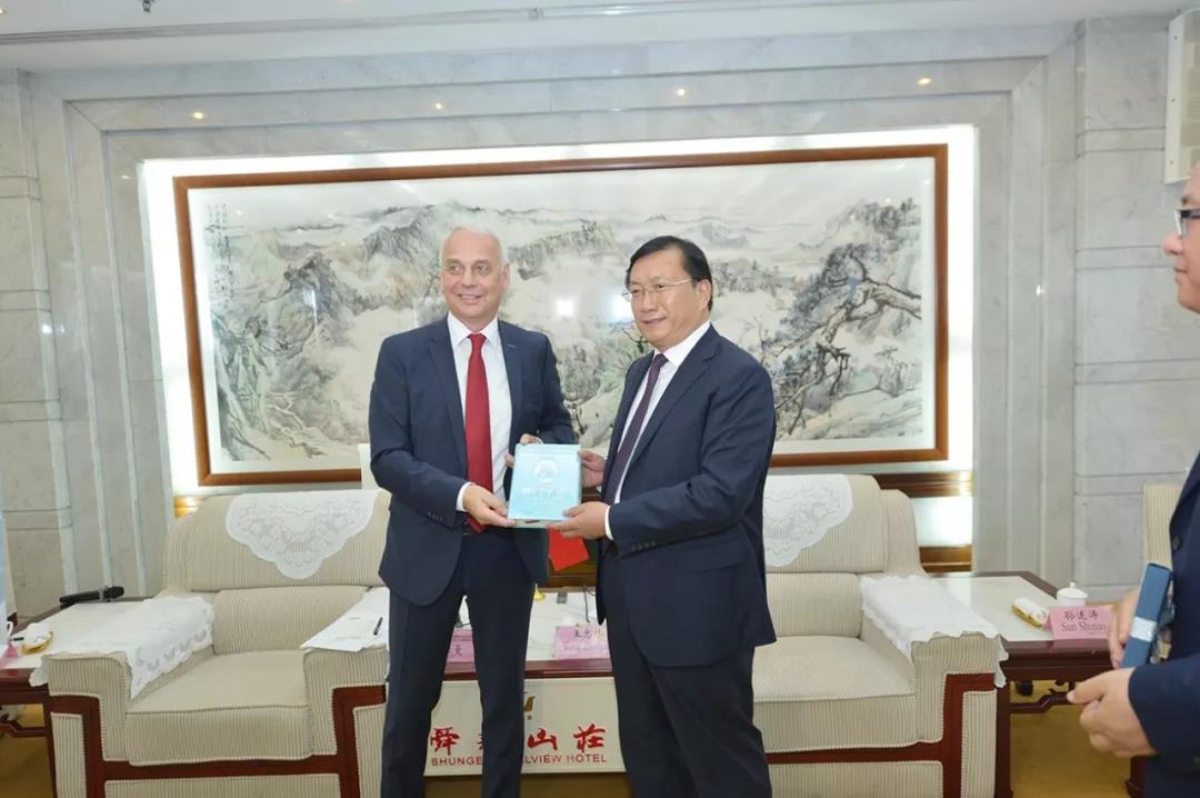 会上,王忠林向赫尔曼一行介绍了山东省、济南市的政治、经济、交通、社会、文化等情况,表达了与西门子合作促进新旧动能转化重大工程的意义。