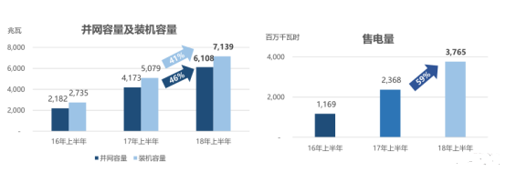 2018上半年,协鑫新能源新增装机容量约1099兆瓦,加上位于美国俄勒冈州的约50兆瓦大型地面光伏电站项目正式投入营运,总装机容量同比上升约41%至约7139兆瓦,持续稳守全球第二大光伏发电企业的领先地位。同时,公司已并网容量较去年年底增加约605兆瓦至约6108兆瓦,光伏电力销售量约3765百万千瓦时,同比大幅攀升约59%。其中,协鑫新能源于国内的新增装机容量全部取得了“531”新政调整前的电价,顺利锁定了项目的回报水平。