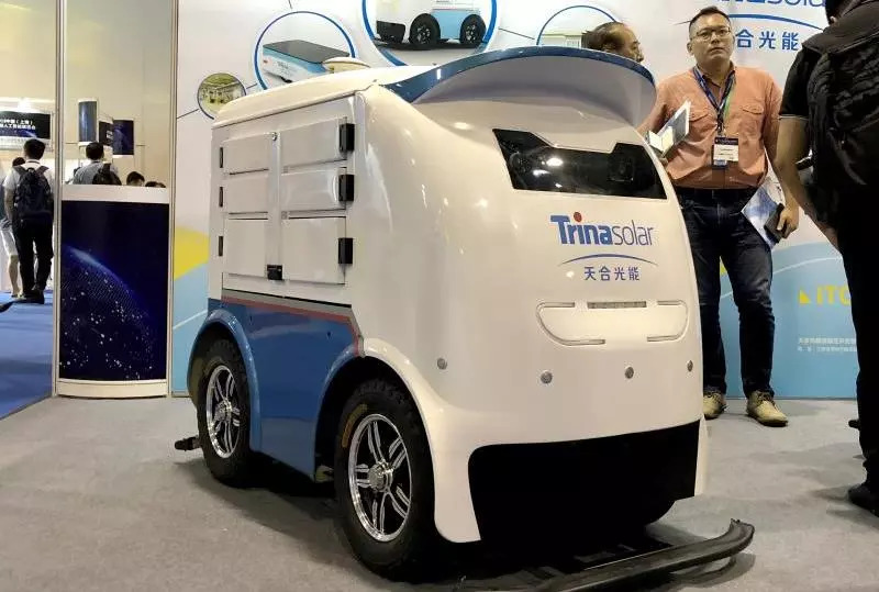 天合光能展出的自主研发的智能无人物流车具有自主导航、音视频通讯、环境感知、多层避障、后台管理及自主充电等功能。智能无人物流车可自定义快递柜尺寸及规格,适应各种不同需求。天合光能以提供整车或车辆服务的方式,探索无人车在不同行业及场景下的应用。