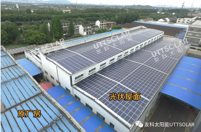 友科太阳能的光伏屋面系统,采用了光伏建筑一体化的应用形式,能够使光伏部分与建筑高度融合,在结构上、色彩上、自然上实现平衡感。