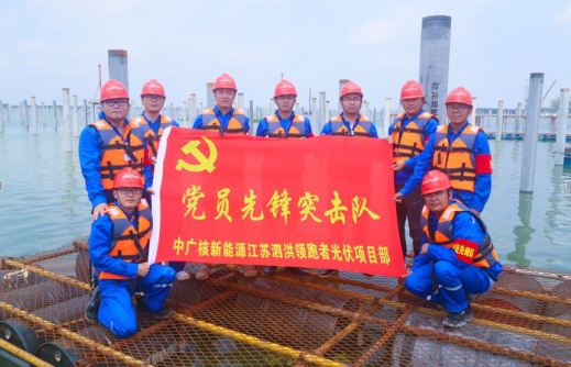 中国广核新能源控股有限公司泗洪光伏发电应用领跑基天岗湖渔光互补领跑者项目部始终牢记“一次把事情做好”的核心价值观;执行“安全第一 质量第一 追求卓越”的基本原则和“如履薄冰、如临深渊、如坐针毡”的安全意识;将“善用自然的能量”的品牌文化贯彻建设全过程。努力造福当地百姓,为当地的能源结构转型贡献力量,为当地经济的加速崛起谱写壮丽篇章。