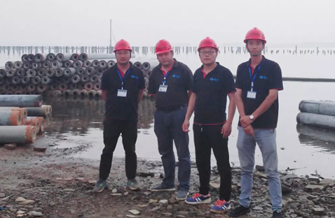 图:施工中的大型桩基平台,施工速度能达200根/天