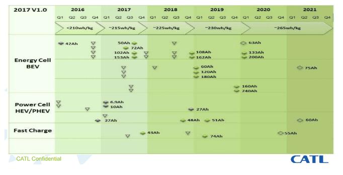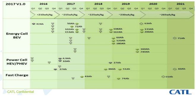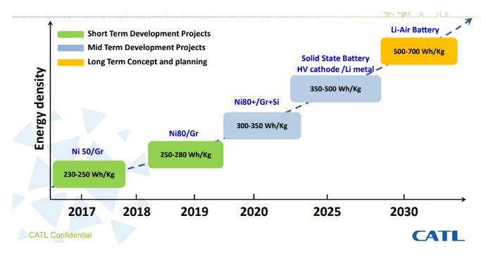 宁德时代能量密度发展路线图: (宁德时代自2017年始能量密度持续攀升)