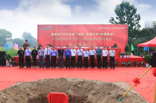 位于长垣县芦岗乡中心集镇,由爱能森投资建设的河南省储能+多能互补+智慧能源清洁能源冷暖站项目举行开工奠基仪式。长垣县党委副书记、县长秦保建,副县长范文卿、王志勇,长垣县发改委、环保局、招商局等部门领导;原国家环保部计划司司长师云林、中国智慧能源产业技术创新战略联盟副理事长刘建平、河南省能源网主任曾茗、爱能森首席科学家曾智勇出席开工典礼。