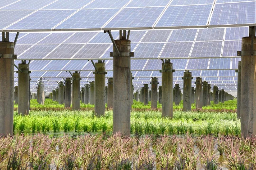 位于浙江省乐清市城东街道的正泰150兆瓦“农光互补”光伏发电项目基地,占地面积约4500亩,采取框架上清洁发电、框架下高效种植 的方式,在不改变农业用地性质的同时,将高效农业种植与清洁能源发电相结合,集工业旅游、科普与农业观光于一体,打造高效智慧型农 光互补光伏电站,年均提供1.4亿千瓦时的清洁电量。目前光伏板下种植的300亩早稻正在收割,已种植的单季晚稻及即将开插的双季晚稻有 1500多亩,还种植藕、茭白、芋头等几百亩蔬菜作物。