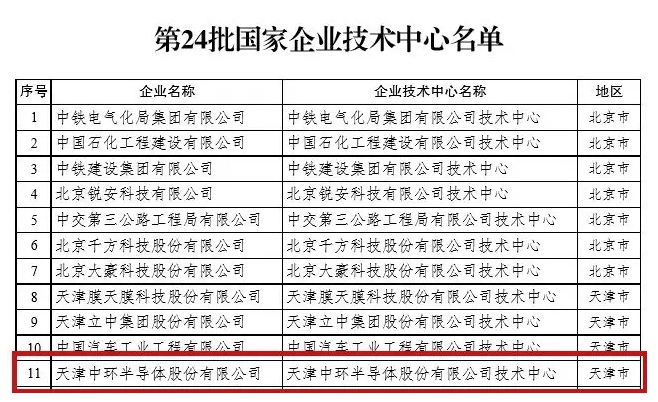 7月13日,国家发展和改革委员会、科学技术部、财政部、海关总署、国家税务总局联合发布第24批新认定国家企业技术中心名单,天津中环半导体股份有限公司技术中心获评国家企业技术中心。